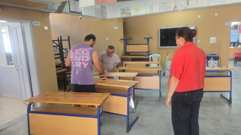 Fatih İlkokulu tecrübeli öğretmen ve hizmetli personelleriyle 2025-2026 eğitim öğretim yılına hazırlanıyor. Söke Sağlık meslek lisesi'nden getirdiğimiz öğrenci sıraları Müdür yardımcıları , memur ve hizmetli arkadaşlarımızın gayretlerri ile önce zımparalarak silimleri daha sonra cilalamaları yapıldı . Kendilerine bu gayretli ve özverili çalışmalarından dolayı okulumuz adına teşekkür ediyoruz.